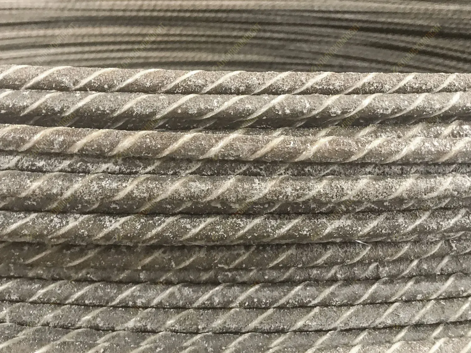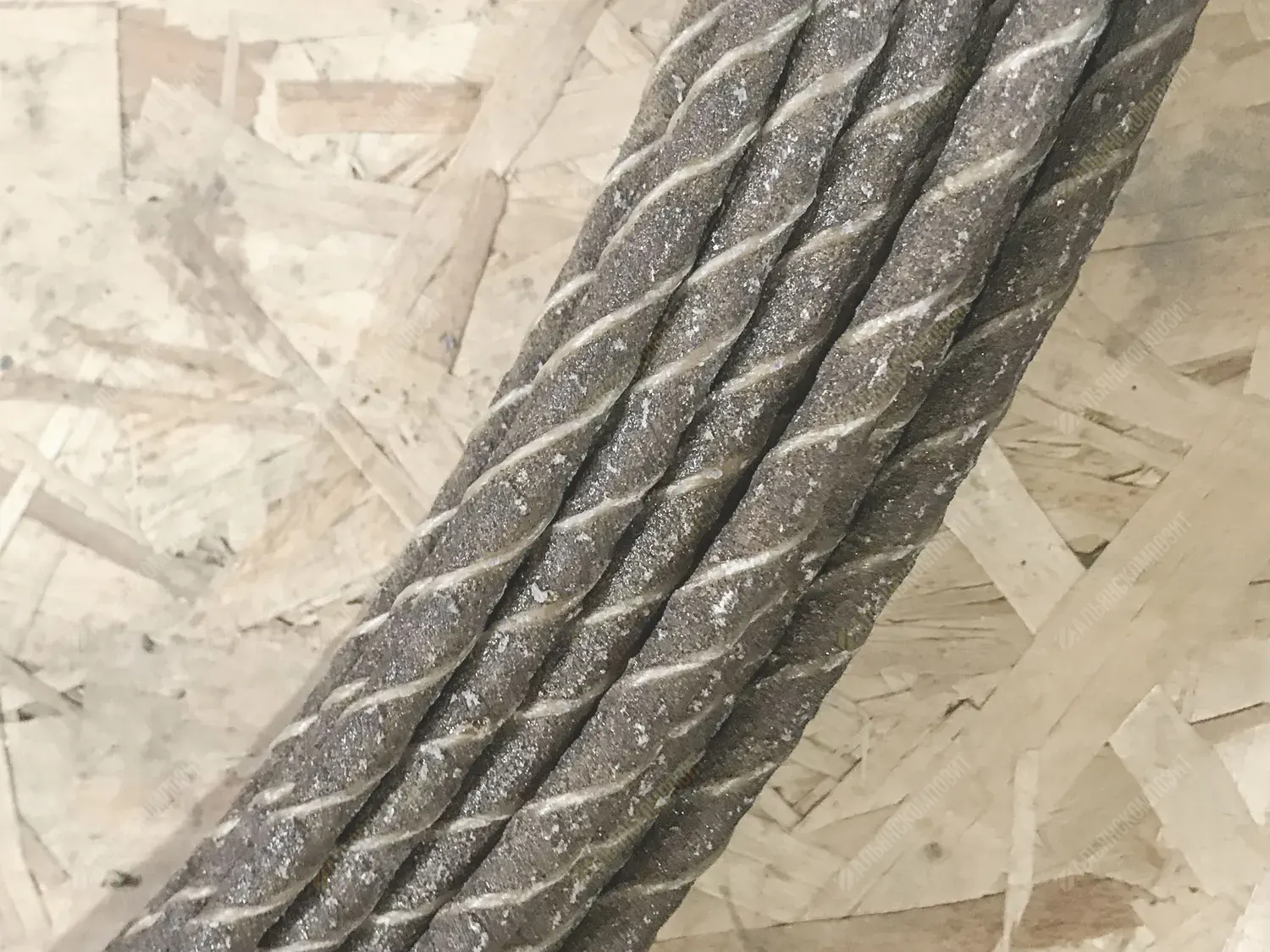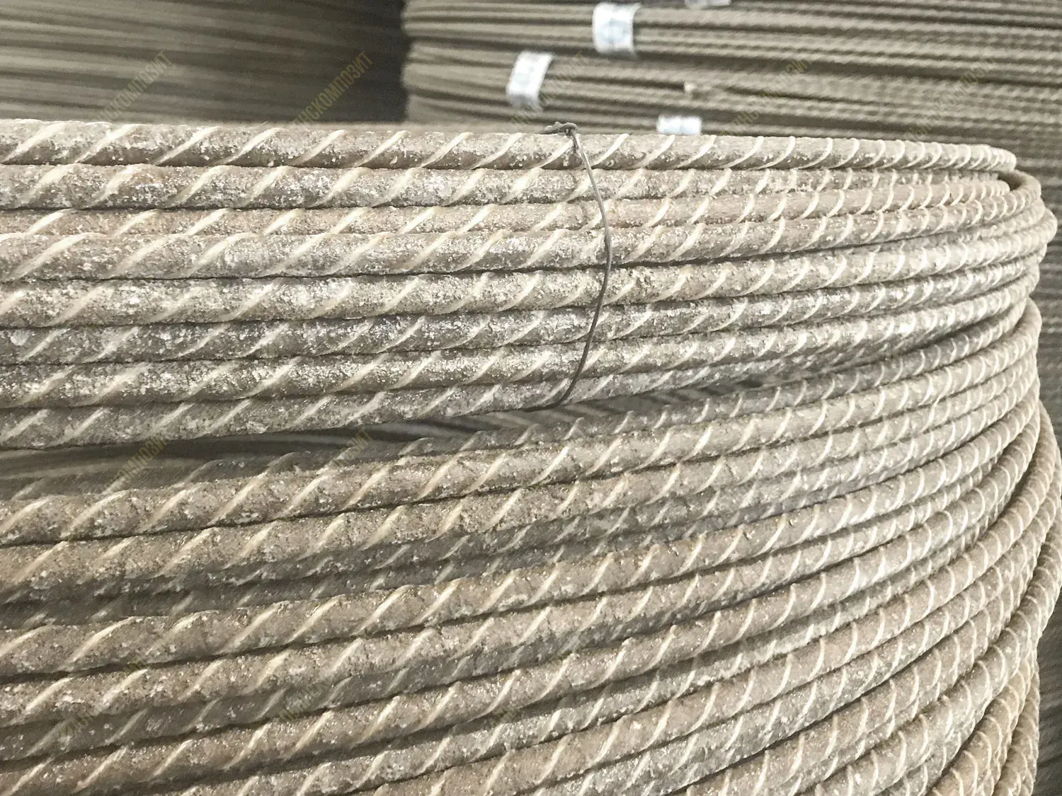 Материал стержня: стеклоровинг. Для уплотнения стеклянных волокон в стержне арматуры жгут стеклопластика перетянут нитью.