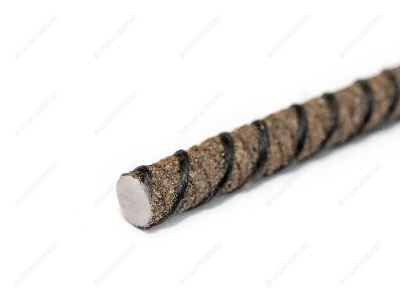 Материал стержня: базальтовое волокно. Для уплотнения волокон в основной стержень арматуры перетянут нитью.