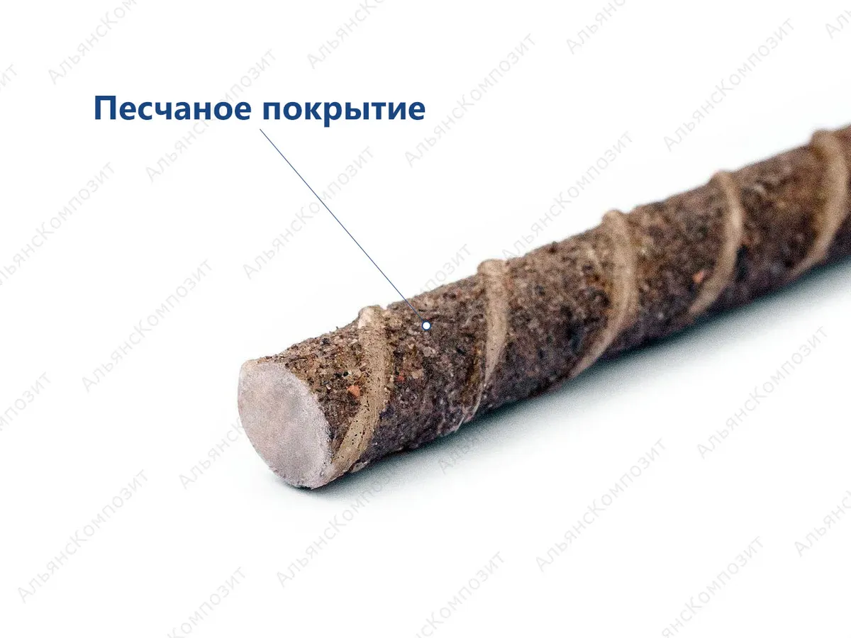 Нанесение песчаной присыпки на поверхность стеклопластиковой арматуры — еще один эффективный метод повышения её сцепления с бетоном. Песок создает шероховатость на поверхности стержня — тем самым увеличивая площадь контакта и адгезию с бетоном. Кроме того, песчаное покрытие не только улучшает сцепление, но и защищает арматуру от солнечных лучей, что особенно важно при хранении и транспортировке.