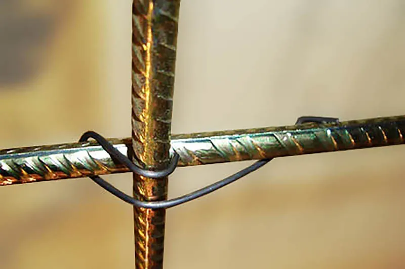 На сегодняшний день этот замечательный метод является самым популярным и дешевым. Для выполнения процедуры можно использовать вязальный крючок, но можно обойтись и руками. Надо сказать, что вязальная проволока довольно удобнаипластична. При перекручивании, сгибании, а также разгибании она не ломается. Диаметры могут составлять до 1,2 мм. Как правило, ее продают бухтами и килограммами. Широко используют со всеми остальными типами вязальных крюков, не считая, конечно, вязальных пистолетов, потому что при их участии работы уже ведутся по-другому.