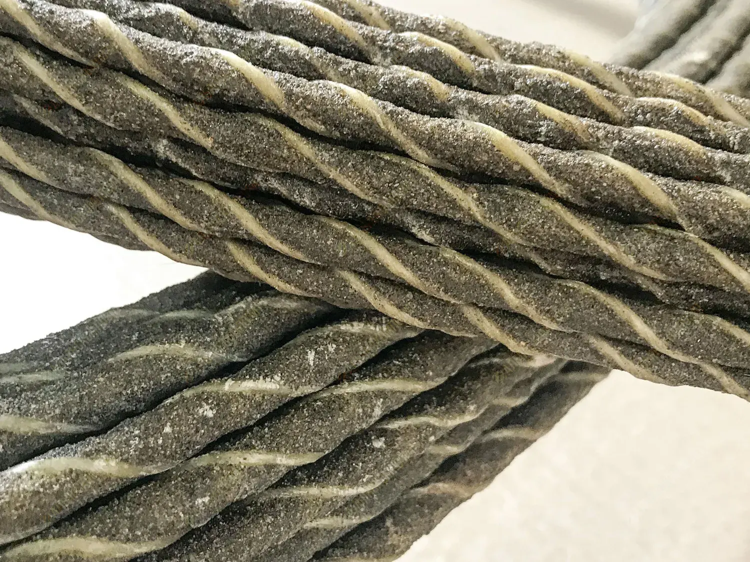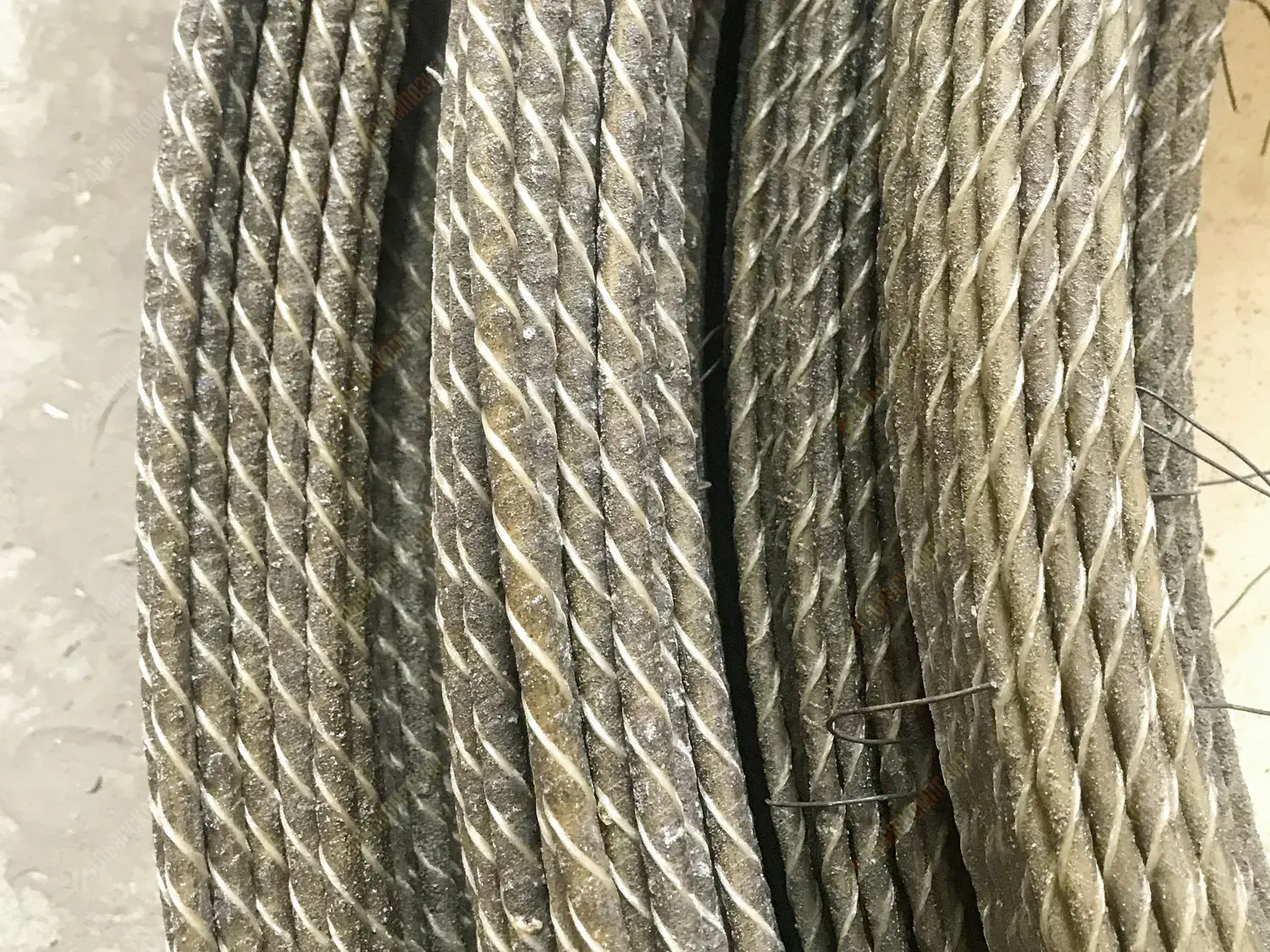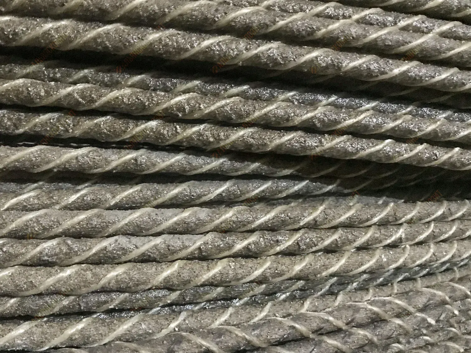 Материал стержня: стеклоровинг. Для уплотнения стеклянных волокон в стержне арматуры жгут стеклопластика перетянут нитью.